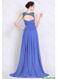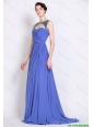 Home >  Prom Dresses >  Modest Prom Dresses > Pretty Bateau Zipper Up Blue Prom Dresses with Brush Train