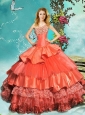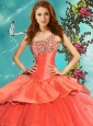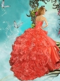 Pretty Beaded One Shoulder Rust Red Quinceanera Dress with Brush Train