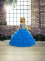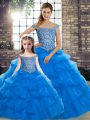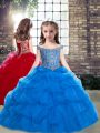 Pretty Beading and Pick Ups Quinceanera Dress Blue Lace Up Sleeveless Brush Train