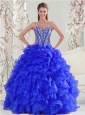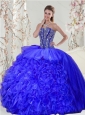 Pretty Beading and Ruffles Sweet 16 Dresses in Royal Blue for 2015