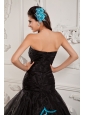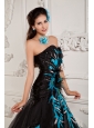 Pretty Black A-line / Princess Prom Dress Sweetheart  Beading and Appliques Floor-length Chiffon
