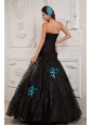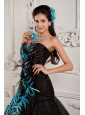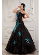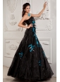 Pretty Black A-line / Princess Prom Dress Sweetheart Beading and Appliques Floor-length Chiffon