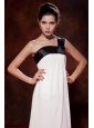 Pretty Black and White Cocktail Dress Bow Empire One Shoulder Floor-length Chiffon