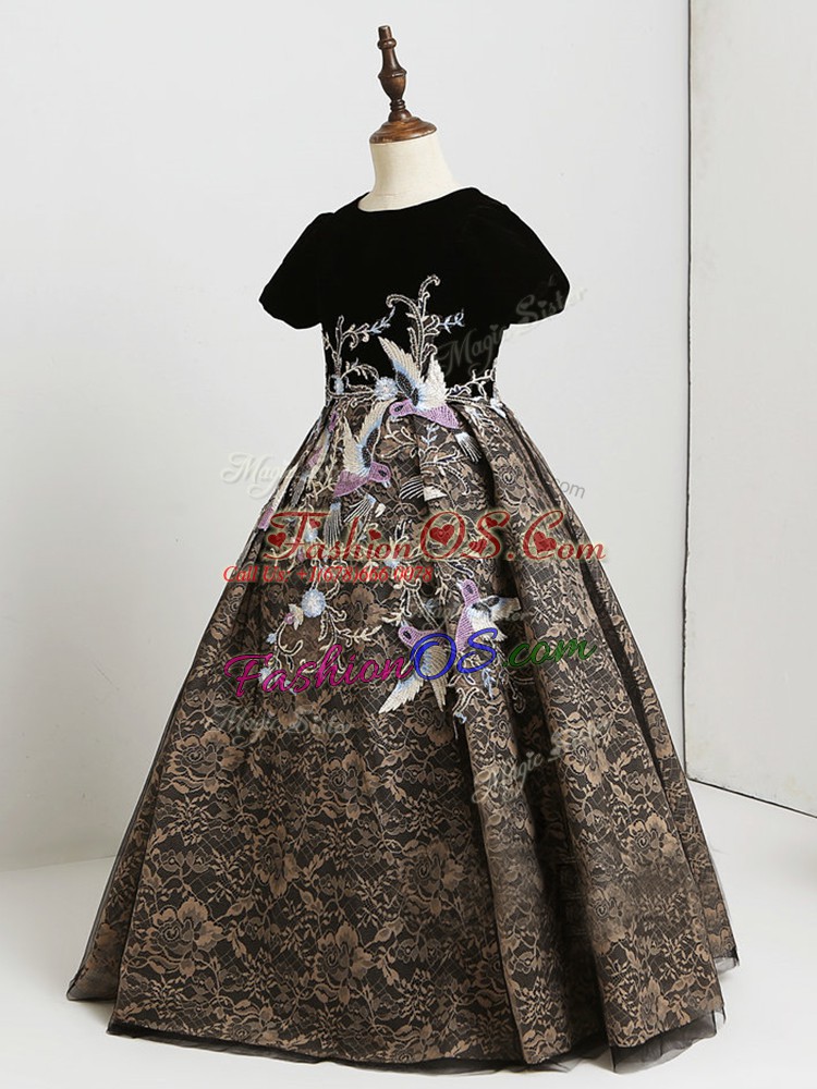 Home >  Special Occasion Dresses >  Lovely Little Girl Pageant Dresses > Pretty Black Zipper Scoop Appliques Kids Pageant Dress Lace Short Sleeves