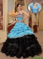 Pretty Blue and Black Ball Gown Strapless Quinceanera Dresses
