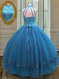 Pretty Blue Sleeveless Beading and Appliques Floor Length Quinceanera Dresses