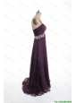 Pretty Brand New Appliques Sweep Train Purple Prom Dresses with One Shoulder
