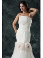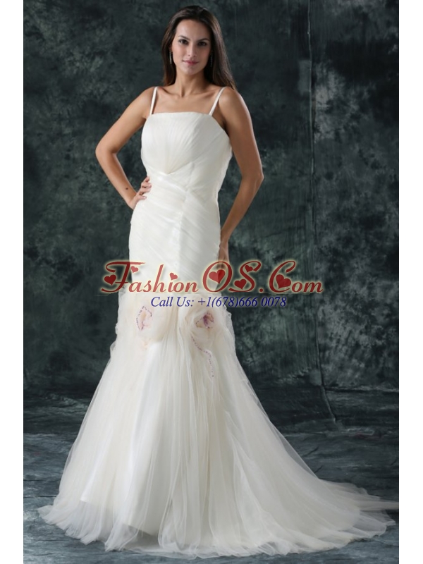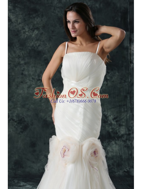 Pretty Brush Train Mermaid Spaghetti Straps Wedding Dress with Flowers