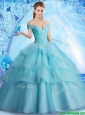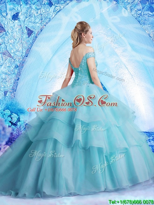 Pretty Brush Train Quinceanera Dress with Beading and Ruffled Layers