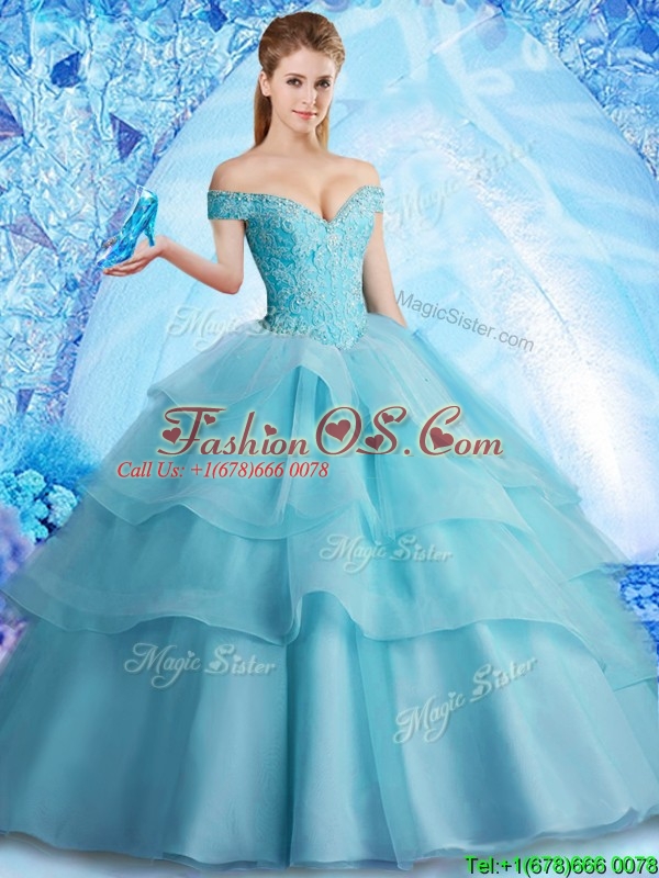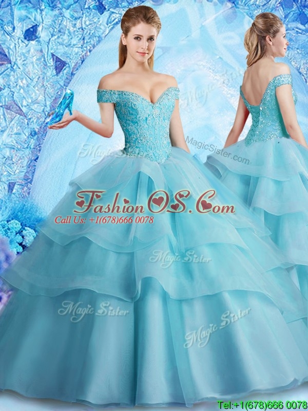 Home >  Quinceanera Dresses >  Cheap Quinceanera Dresses > Pretty Brush Train Quinceanera Dress with Beading and Ruffled Layers