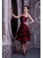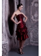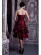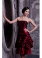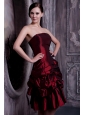 Pretty Burgundy A-line Strapless Prom / Homecoming Dress Taffeta Pick-ups Knee-length