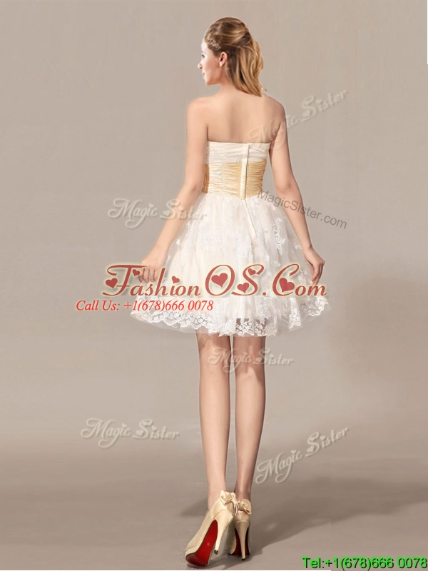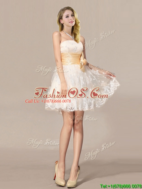 Pretty Chamagne Mini Length Wedding Dresses with Bowknot and Embroidery