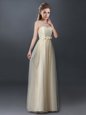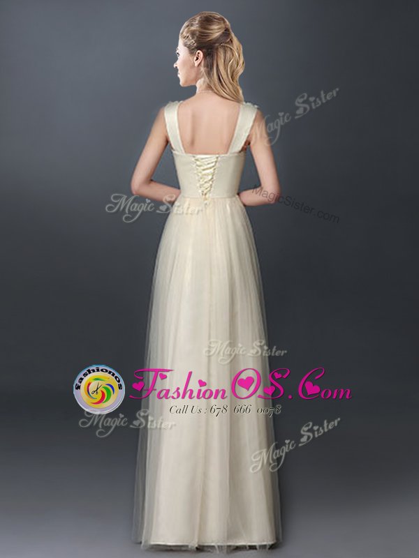 Home >  Special Occasion Dresses >  New Style Dama Dresses > Pretty Champagne Empire Scoop Sleeveless Tulle Floor Length Lace Up Lace and Hand Made Flower Dama Dress