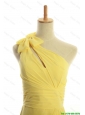 Pretty Classical One Shoulder Long Yellow Prom Dresses with Bowknot