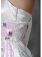 This special designed dress fatures a one-shoulder neckline and the ruched fabric trims from the right hip to the left shouder forms a daigonal design. The double sequined sash adorned with square gems to make the already shimmering dress more shining and more complicated! The wide oblique sequined straps ornament the dress to creat the intense design feeling. The hidden zip closure under the armpit secures the dress in place.