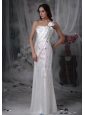 Pretty Column One Shoulder Evening Dress Taffeta Beading and Ruch Floor-length