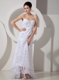 Opulence is the word written all over this dress. It is truly an example of high end couturing fashion. It features a sheathy bodice with straps in a lovely floral appliqued fabric. Pleats gathered on bust and hips add interest and detail to the mid-section of the dress. The crystal chains on the interactions make it shinning and push you to be the lightspot. The floor-length skirt forms an asymmetrical high-end hemline before shaping the brush train in the back. If you're looking for a high-end dress without the high-end price tag, this is definitely one you should consider. The back completes with zipper.