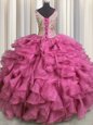 Home >  Quinceanera Dresses >  Luxurious Quinceanera Dresses > Pretty Coral Red Lace Up V-neck Beading and Ruffles Quinceanera Dress Organza Sleeveless