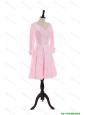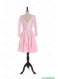 Pretty Custom Made A Line V Neck 3/4 Length Sleeve Prom Dresses in Baby Pink