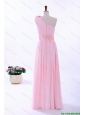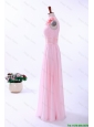 Pretty Custom Made Empire One Shoulder Hand Made Flowers Prom Dresses in Baby Pink