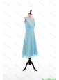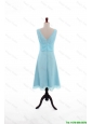 Pretty Custom Made Empire V Neck Knee Length Prom Dresses in Light Blue