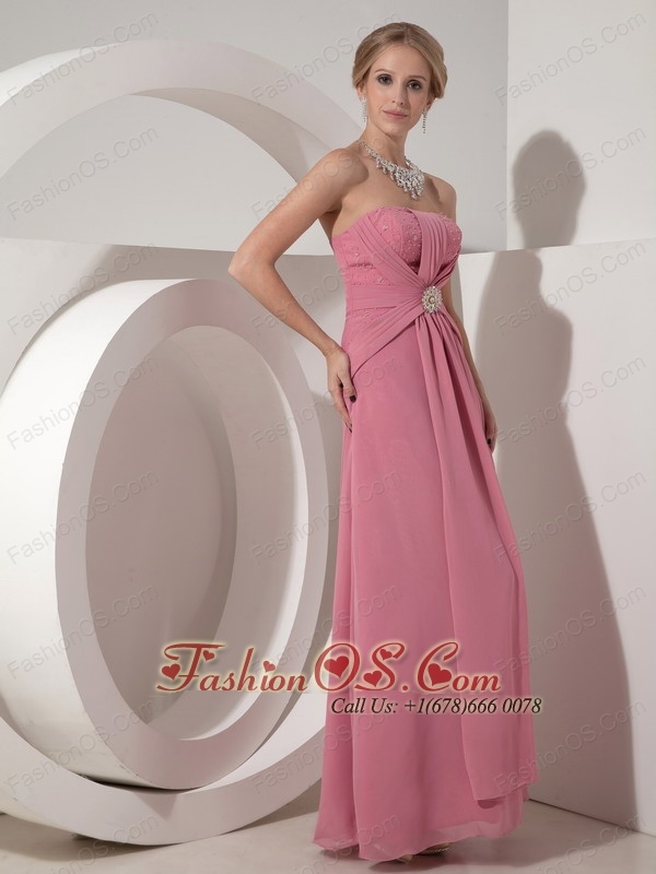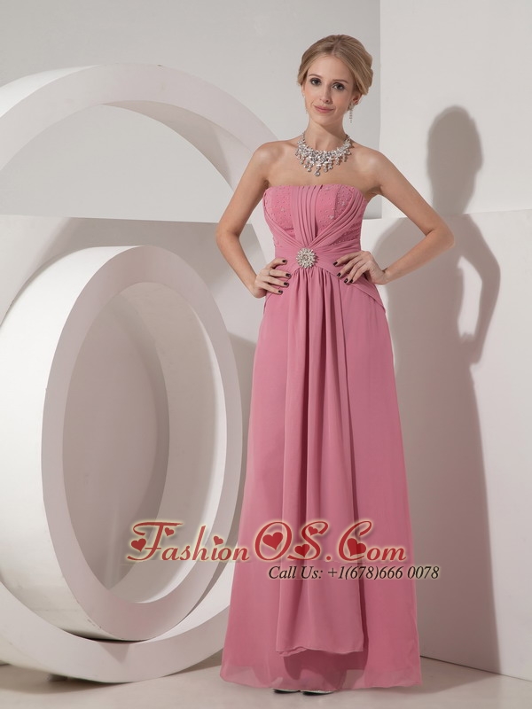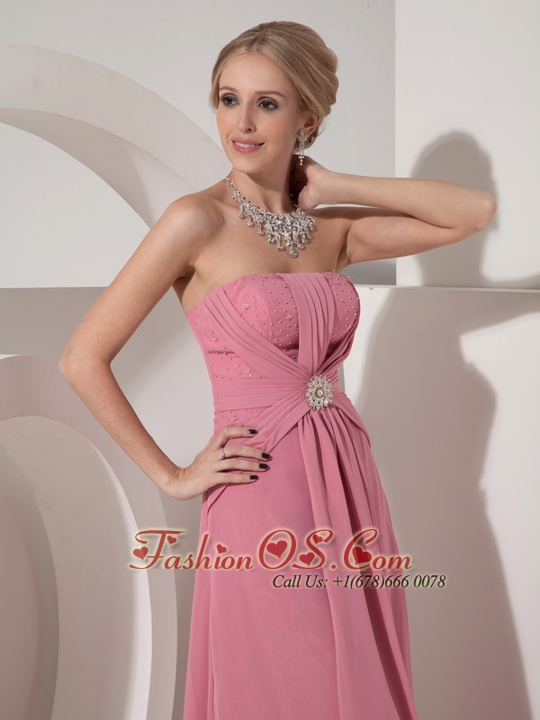Pretty Dusty Rose Mother of the Bride Dress Column Strapless Floor-length Chiffon Beading