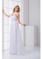 Pretty Empire Asymmetrical Neck Court Train Wedding Dress with Flower