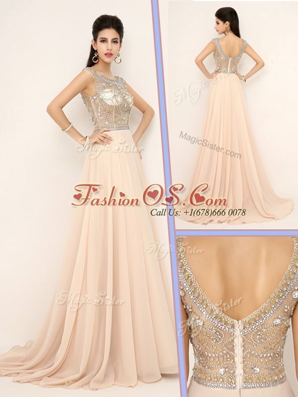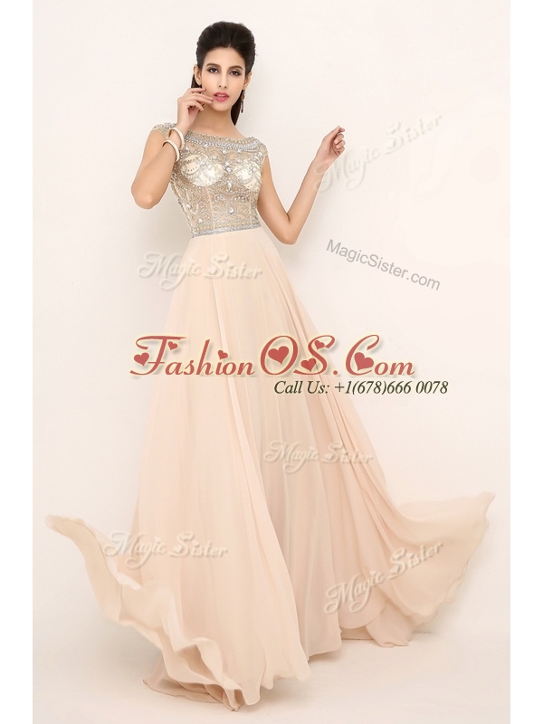 Pretty Empire Bateau Brush Train Celebrity Dresses with Beading