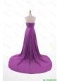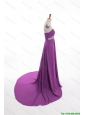 Pretty Fashionable Beaded Court Train Prom Dresses in Eggplant Purple