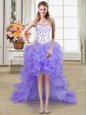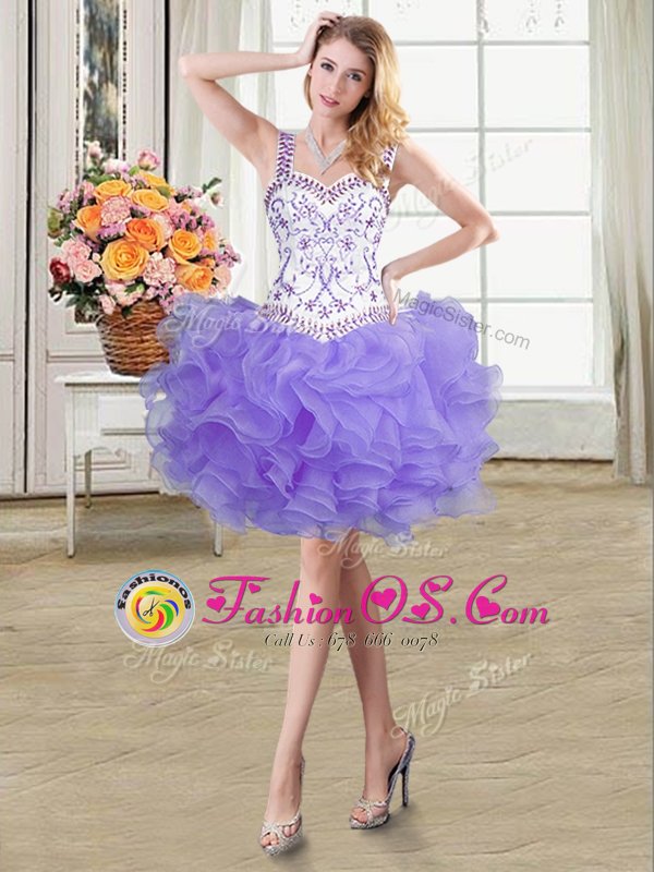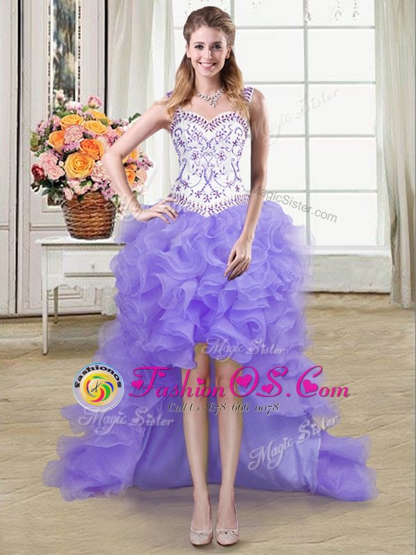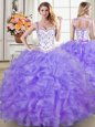 Pretty Four Piece Lavender Lace Up Straps Beading and Lace and Ruffles 15th Birthday Dress Organza Sleeveless