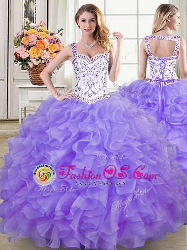 Home >  Quinceanera Dresses >  Detachable Quinceanera Skirts > Pretty Four Piece Lavender Lace Up Straps Beading and Lace and Ruffles 15th Birthday Dress Organza Sleeveless