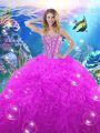 Pretty Fuchsia Ball Gowns Sweetheart Sleeveless Organza Floor Length Lace Up Beading and Ruffles Quinceanera Dresses