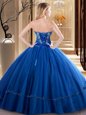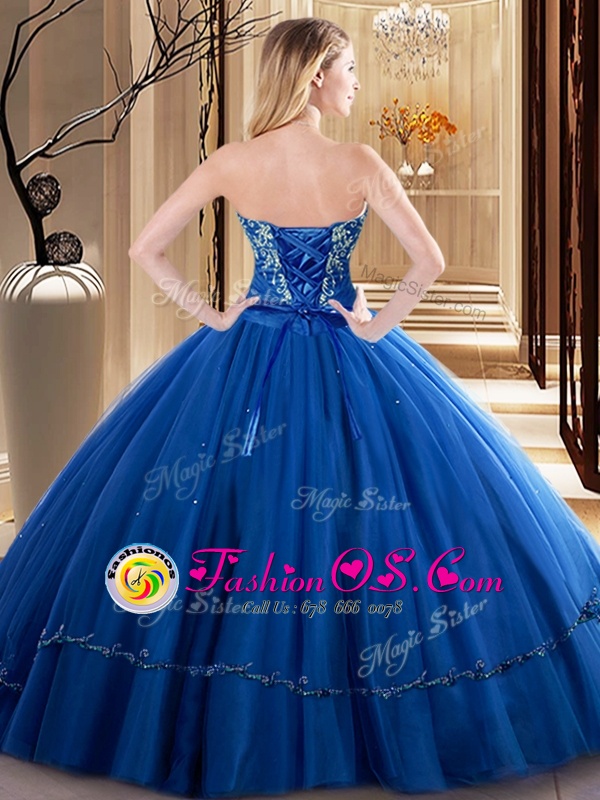 Pretty Fuchsia Lace Up Sweetheart Embroidery Sweet 16 Dresses Tulle Sleeveless