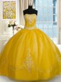 Pretty Gold Sweet 16 Dress Military Ball and Sweet 16 and Quinceanera and For with Beading and Embroidery Strapless Sleeveless Lace Up