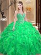 Pretty Green Sleeveless Floor Length Embroidery and Ruffles Lace Up Quinceanera Gowns