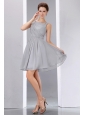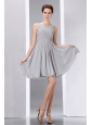 Pretty Grey Cocktail Dress A-line Scoop Knee-length Chiffon Ruch