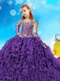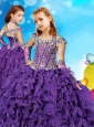 Pretty Halter Top Cap Sleeves Little Girl Pageant Dress with Beading and Ruffles