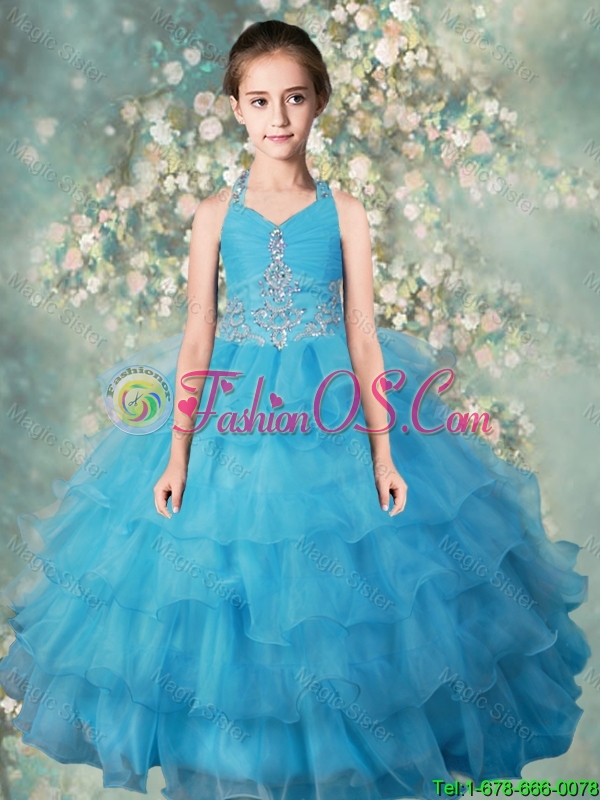 Pretty Halter Top Mini Quinceanera Dresses with Beading and Ruffled Layers