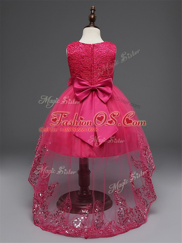 Pretty High Low Ball Gowns Sleeveless Lavender Little Girl Pageant Dress Zipper