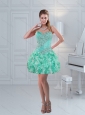 Pretty High Low Sweetheart Ruffles and Beading Prom Dress in Apple Green