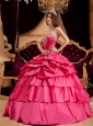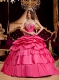Pretty Hot Pink Quinceanera Dress Sweetheart Taffeta Appliques Ball Gown