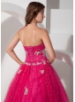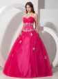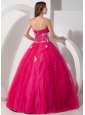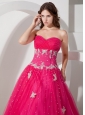 Pretty Hot Pink Sweetheart Quinceanera Dress with Appliques and Beading