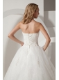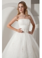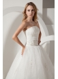 Pretty Ivory Embroidery Wedding Dress Strapless Floor-length Taffeta and Organza