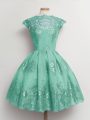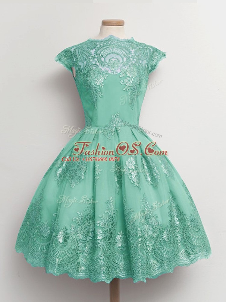 Pretty Knee Length Turquoise Quinceanera Court Dresses Tulle Cap Sleeves Lace