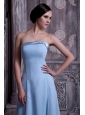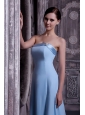Pretty Light Blue A-line Strapless Prom / Homecoming Dress Satin and Chiffon Brush Train