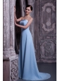 Home >  Special Occasion Dresses >  Homecoming Dresses > Pretty Light Blue A-line Strapless Prom / Homecoming Dress Satin and Chiffon Brush Train