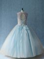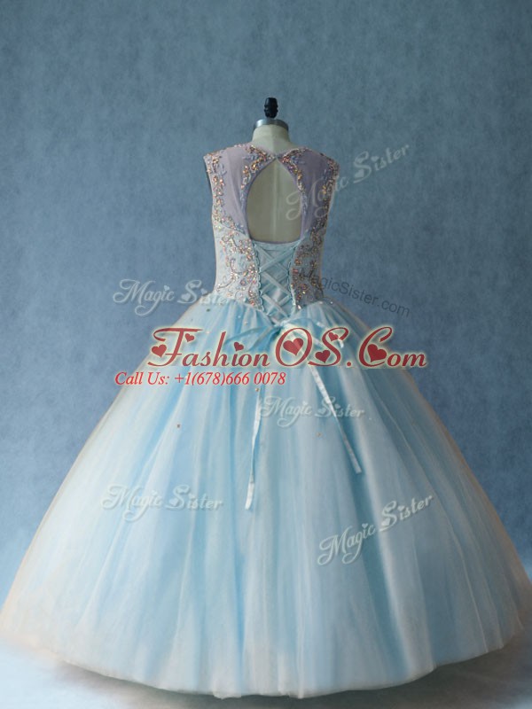 Pretty Light Blue Tulle Lace Up Vestidos de Quinceanera Sleeveless Floor Length Beading