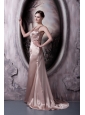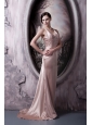 Home >  Prom Dresses >  Elegant Prom Dresses > Pretty Light Pink Column Prom Dress Straps Elastic Woven Satin Beading Brush Train