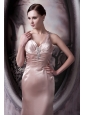 Pretty Light Pink Column Prom Dress Straps Elastic Woven Satin Beading Brush Train