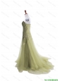 Pretty Luxurious Appliques Brush Train Long Prom Dresses in Olive Green